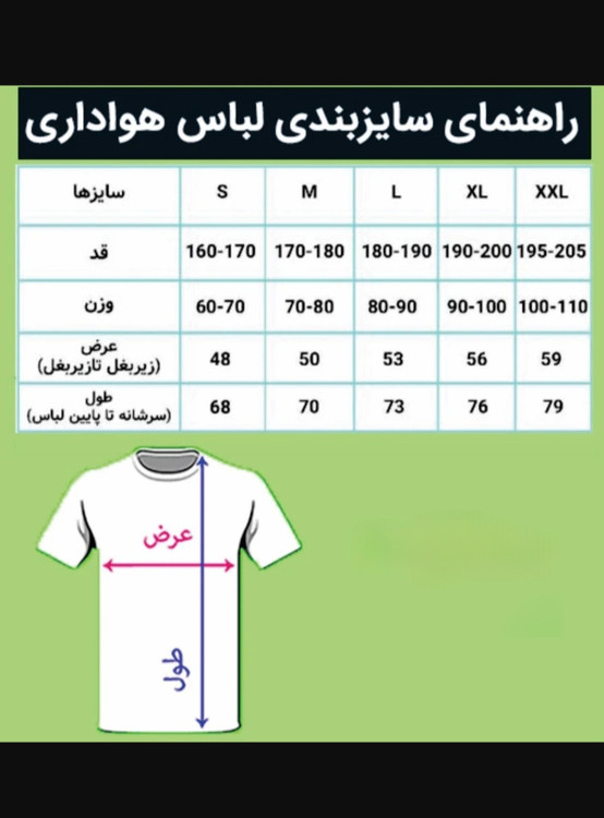به دلیل فیت بدنی پلیری، توصیه میشود یک سایز بزرگتر از سفارش دهید