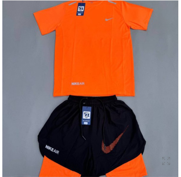 ست کامل تیشرت شلوارک کشاله دار نایک نارنجی